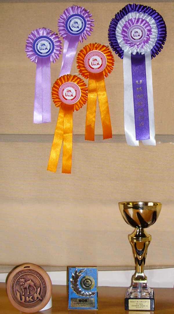 2 x BIG 3, 17 x BOB, 4 x BOS, 5 x BOB-puppy, 18 x BOB-junior, 3 x BOS-junior, 1 x CACIB, 13 x CAC, 2 x res-CAC, 1 x C.I.B, 5 x CH, 17 x JCH, 1 x Baltic Junior Winner-12